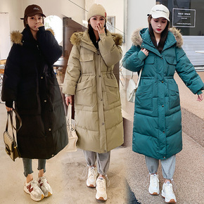欧美大衣冬新款羽绒棉服女长款过膝大毛领韩版修身显瘦...