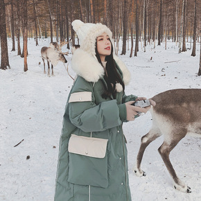 2022冬季新款韩版毛领连帽长款羽绒棉服保暖外套...