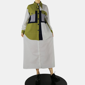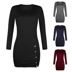 2021秋冬新款亚马逊欧美性感长袖方领纯色拼接连衣...