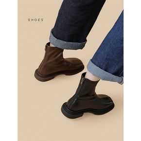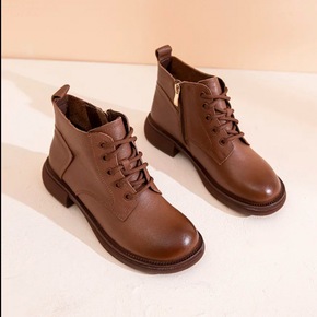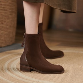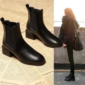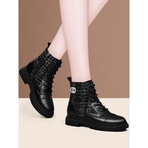 圆头短靴女粗跟中跟马丁靴2022春秋冬季新款单靴弹...