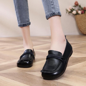 2022秋季新款头层牛皮舒适中老年妈妈鞋平底软底妈...