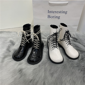 英伦风白色马丁靴女鞋2021年新款网红中筒漆皮平底...