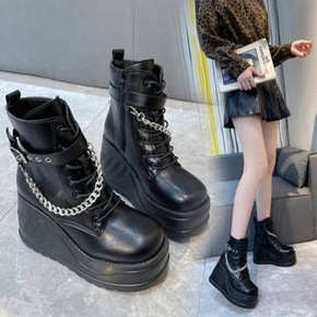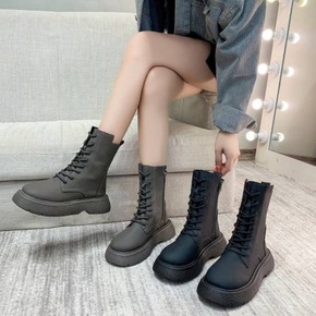 增高靴子女厚底马丁靴女英伦风2022新款薄款透气短...
