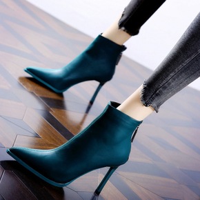 欧美风简约尖头高跟踝靴2022年秋冬新款百搭马丁靴...