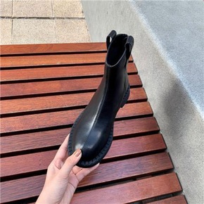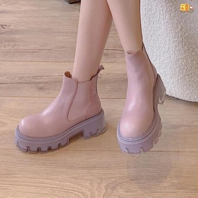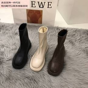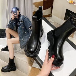 X切尔西短靴女2021秋冬圆头厚底时髦V口显瘦百搭...
