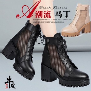 马丁靴女年夏季新款白色百搭网红ins潮中跟厚底瘦瘦...