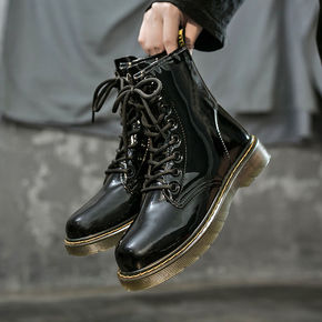 港风ins马丁靴女高帮英伦风机车秋季情侣工装中帮皮...