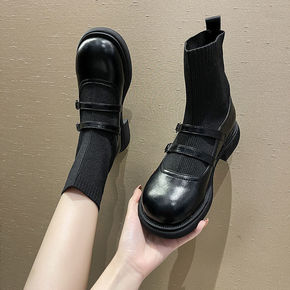 瘦瘦靴短靴女秋季薄款2021新款单靴低跟连袜靴显瘦...