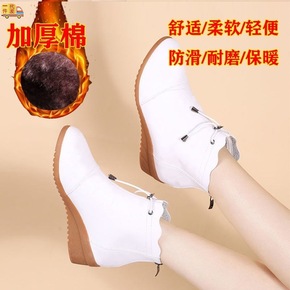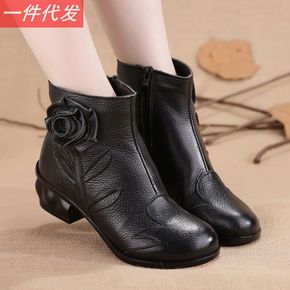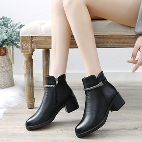 春秋季妈妈鞋女士棉鞋中老年人短靴中年女鞋皮鞋加绒保...