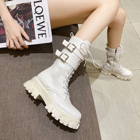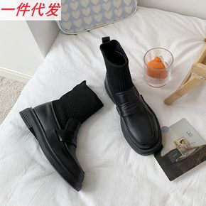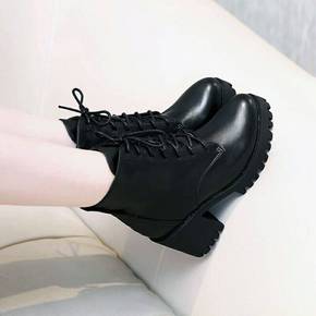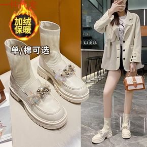 瘦瘦靴女2022年新款春秋季厚底马丁靴套筒英伦风切...