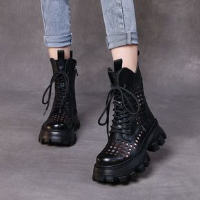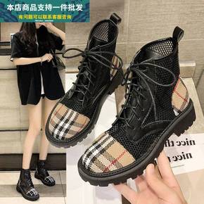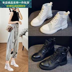 网格马丁靴女2022春夏新款系带短靴网面镂空凉靴百...