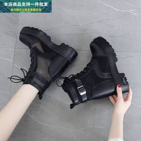 网纱马丁靴女夏季薄款透气网靴春夏百搭凉鞋复古镂空短...