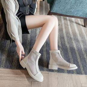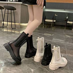 网靴新款网纱凉靴配裙子镂空春夏短靴百搭短裙厚底透气...