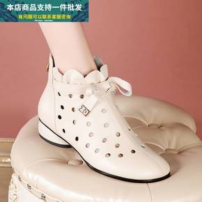 蝴蝶结软皮洞洞鞋女2022新款镂空短靴秋季凉靴平底...