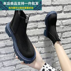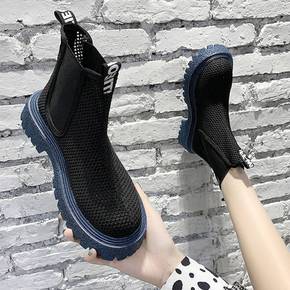 夏天马丁靴子夏款夏季中短靴网纱凉靴短靴配裙子百搭网...