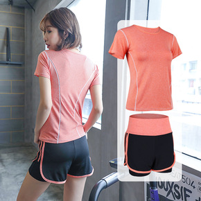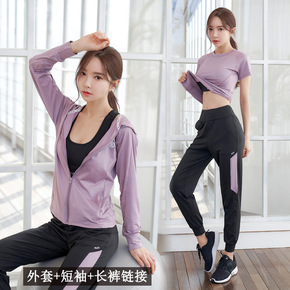健身房套装女外套短袖三件套宽松专业运动跑步春夏时尚...