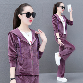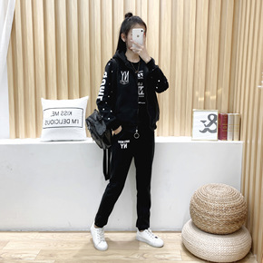 2021秋冬季新款女装可爱字母运动套装 保暖长袖卫...