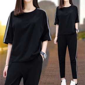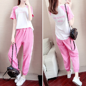 欧洲站夏季女装新款网红短袖宽松运动服套装韩版休闲两...