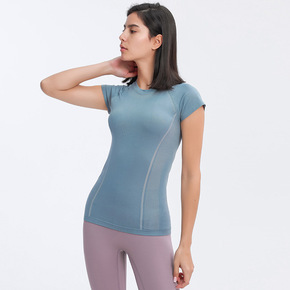 一件代发2021新款圆领透气瑜伽短袖女 弹力运动健...