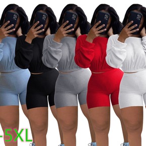 2022夏季亚马逊新款跨境女装纯色长袖休闲运动套装...