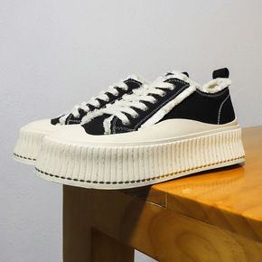 春季帆布鞋女厚底2021秋冬新款ulzzang休闲...