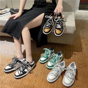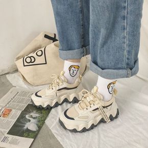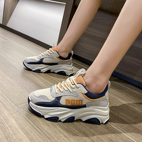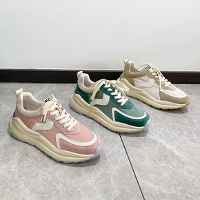 老爹鞋女2021秋季新款韩版圆头系带拼色休闲运动鞋...