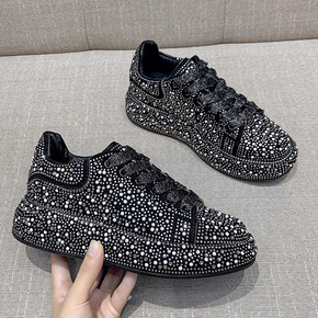 2021秋季新款欧洲站满钻水钻厚底运动板鞋学院风系...