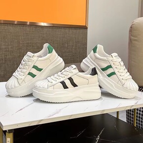 明星同款厚底小白鞋女真皮2022秋季时尚百搭贝壳头...