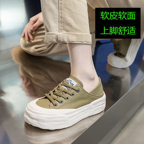 2022新款网红厚底溶解圆头面包鞋女软皮懒人两穿可...
