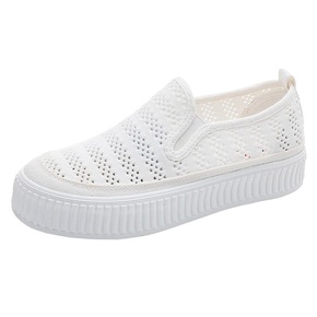 小白鞋夏季薄款女布鞋厚底缕空懒人鞋透气一脚蹬帆布鞋...