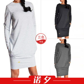 诺夕 2021秋冬亚马逊跨境外贸 圆领口袋T恤裙...