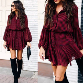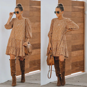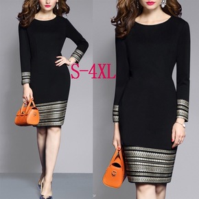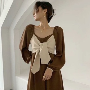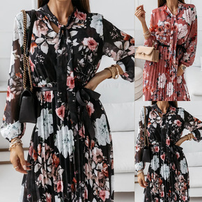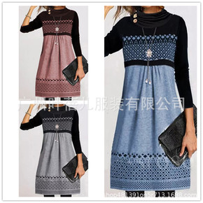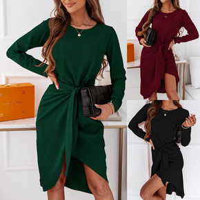 跨境亚马逊wish2021秋装新款长袖长裙气质范收...