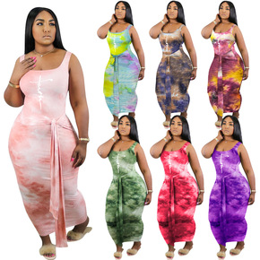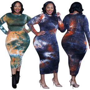 20975跨境亚马逊 扎染印花紧身包臀性感长款秋冬...