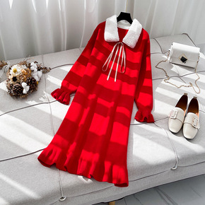 2022大码女装秋冬新款红色连衣裙胖妹妹本命红洋气...