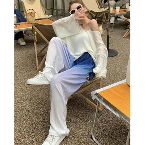 网红时尚薄款冰丝针织上衣女夏宽松阔腿渐变色休闲拖地...