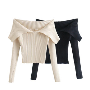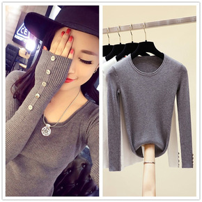 2022新款不规则v领上衣服长袖修身针织毛衣打底衫...