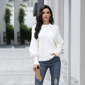 2021秋冬欧美亚马逊爆款女装 灯笼袖半高领包芯纱...
