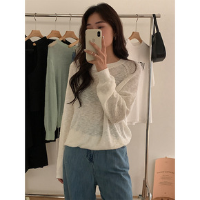 the mind春季新款圆领长袖套头上衣小衫韩版宽...