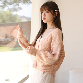 欧美跨境秋冬女新款针织开衫宽松上衣外搭 羊毛衫V领...