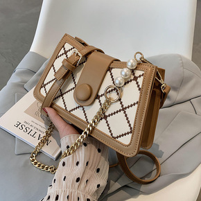 包包2022新款时尚女包菱格珍珠链条小方包百搭单肩...