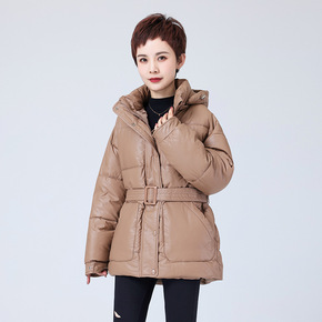 格子羽绒棉服女中长款宽松系带筒约大方轻薄无压迫感潮...