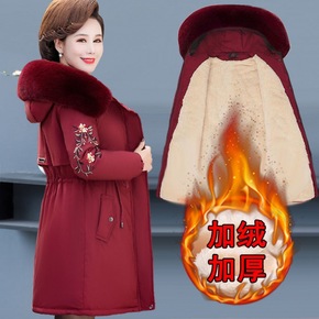民族风刺绣棉服女中长款复古盘扣冬季新款棉祆女...