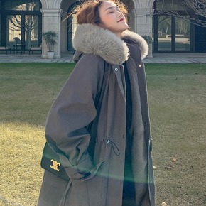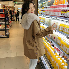 中长款毛绒内里派克服女2021冬季新款韩版时尚大毛...