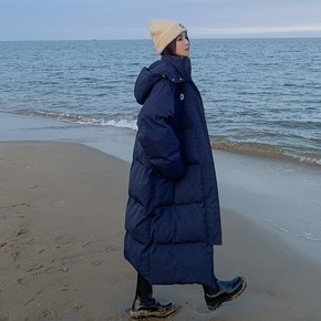 长款羽绒棉服女2021新款冬季韩版宽松连帽过膝保暖...