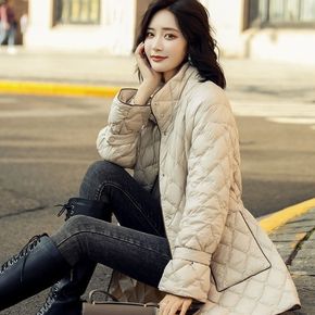实拍2021新款羽绒棉服女冬加厚小个子韩版收腰立领...
