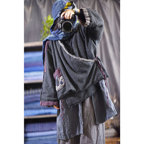 20/11月/童知 毛呢手绣贴布斜襟系带前短后长...