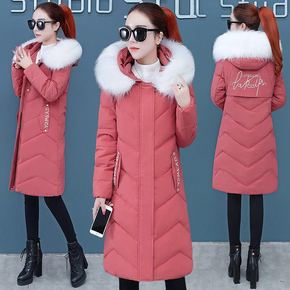 韩版羽绒棉服女长款冬装修身显瘦过膝大码大毛领棉衣外...