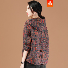 复古连帽棉衣女士棉服宽松加厚加绒印花棉袄开衫外套冬...