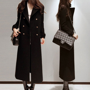 秋冬新款2022年欧美时尚修身西装领双排扣超长款大...