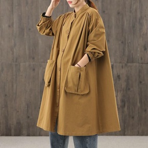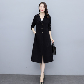 跨境2021新款赫本风气质通勤西装领直筒型纯色大衣...